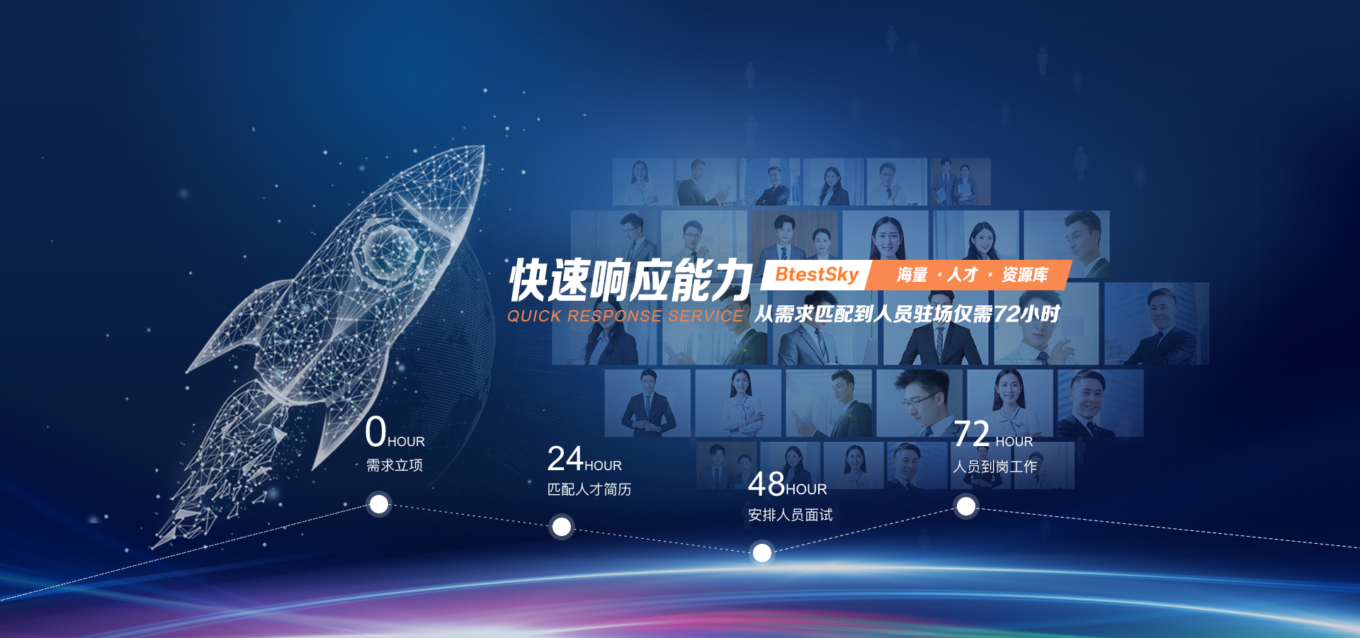Talent outsourcing service? 多重嚴(yán)格把關(guān),從技術(shù)能力、溝通能力、學(xué)習(xí)能力、適應(yīng)能力,人員背景等多個(gè)方面進(jìn)行了嚴(yán)格篩選,使我們提供的人才更加貼合客戶需求; ? 招聘團(tuán)隊(duì)100人以上,24小時(shí)推薦簡歷,36小時(shí)內(nèi)復(fù)試,72小時(shí)入職